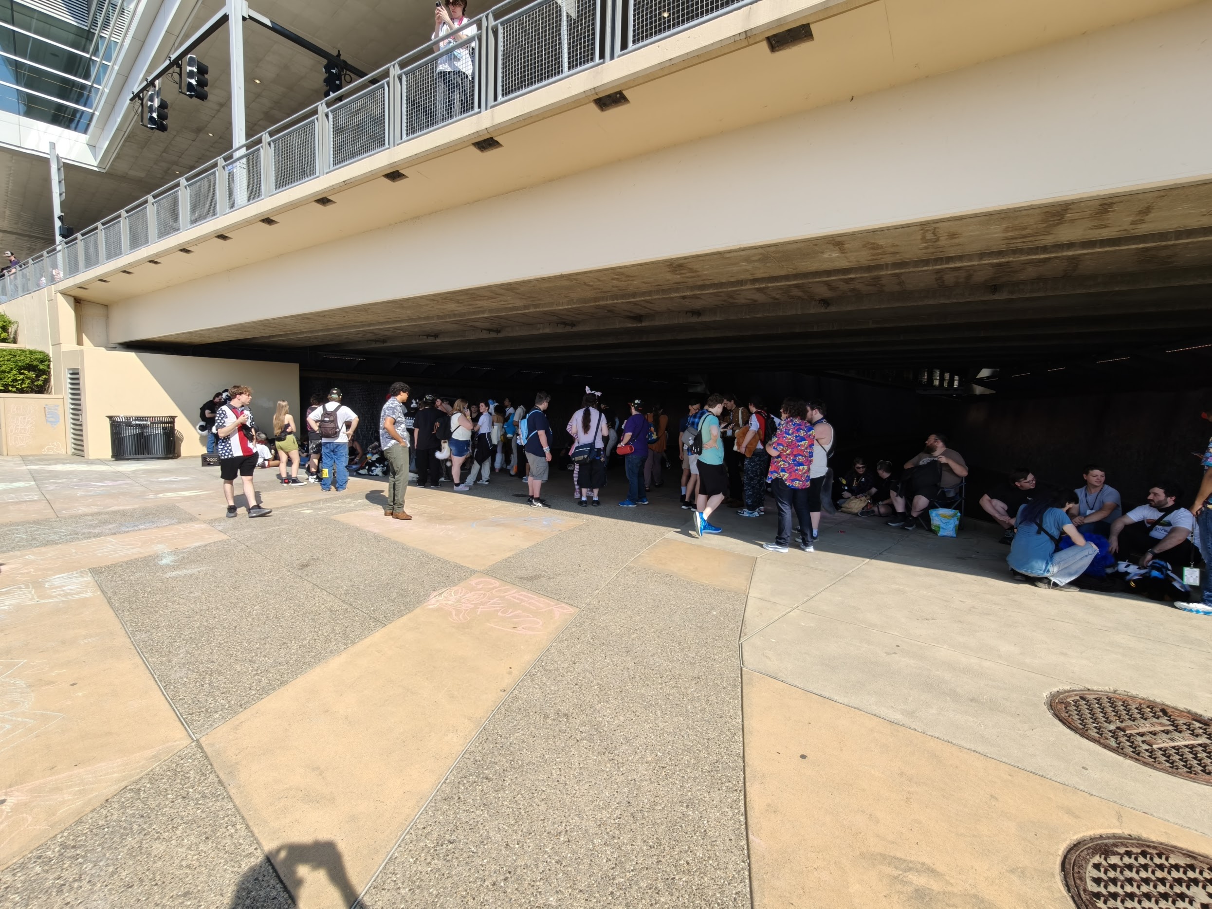 路的另一侧是匹兹堡会展中心(David L. Lawrence Convention Center),其崭新的白色外墙与锈蚀的铁路桥形成了鲜明对比。当时正在举办漫展,随处可见带着福瑞头套的人,他们脱下头套在阴影处的喷泉旁乘凉。他们三五成群地聚在建筑阴影处的人造瀑布旁,取下厚重的头套乘凉休息。那天匹兹堡的气温超过了三十摄氏度,算是这座温带城市一年中最炎热的时段之一,而爱好者居然在这种天气能穿着毛绒服装。美国的亚文化圈子中对福瑞的热衷也是有意思的一个社会学话题,我个人不理解但尊重。