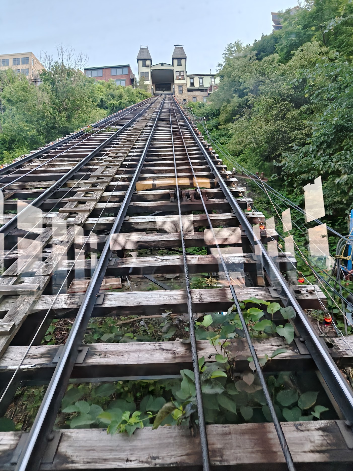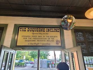 我们坐公交跨过大桥前往此行最重要的目的地Duquesne incline。这座历史悠久的高架缆车系统由一个非营利组织自发维护运营,对卡内基梅隆大学和匹兹堡大学的学生完全免费,只需在入口闸机刷学生ID即可通行,这也是匹兹堡作为大学城的特色。