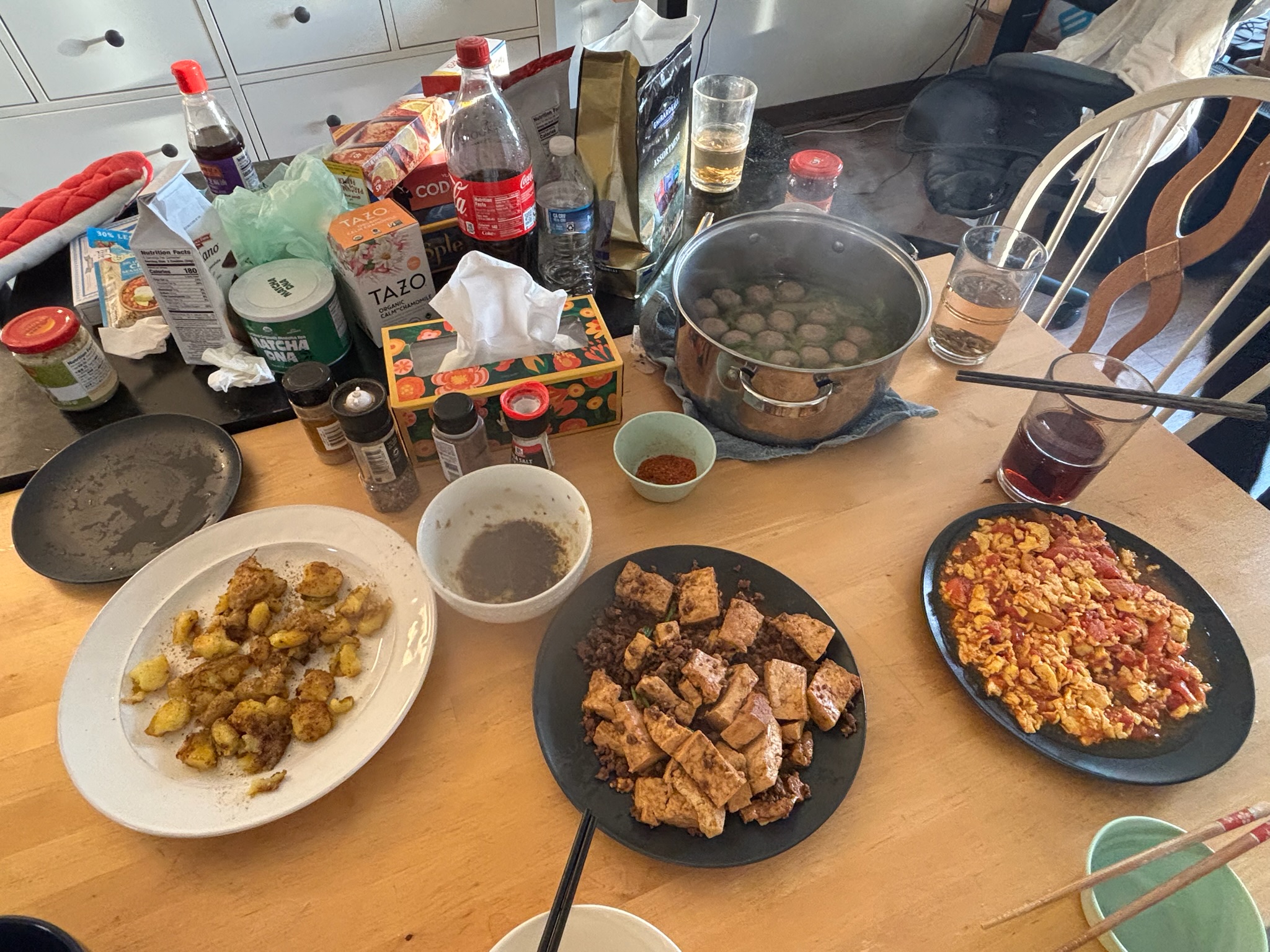 周末,我们几个从中国来的同学相约在某人的公寓里举行烹饪聚会,每人准备一道菜。从一起逛超市采购食材开始,到花上一两个小时炖汤炒菜,我们边做边吃,最后守着高压锅放气等待精心熬制的汤品完成。晚上八点多,大家还可以在公寓阳台上欣赏匹兹堡的日落,看着天际线从橙红渐变成深蓝。